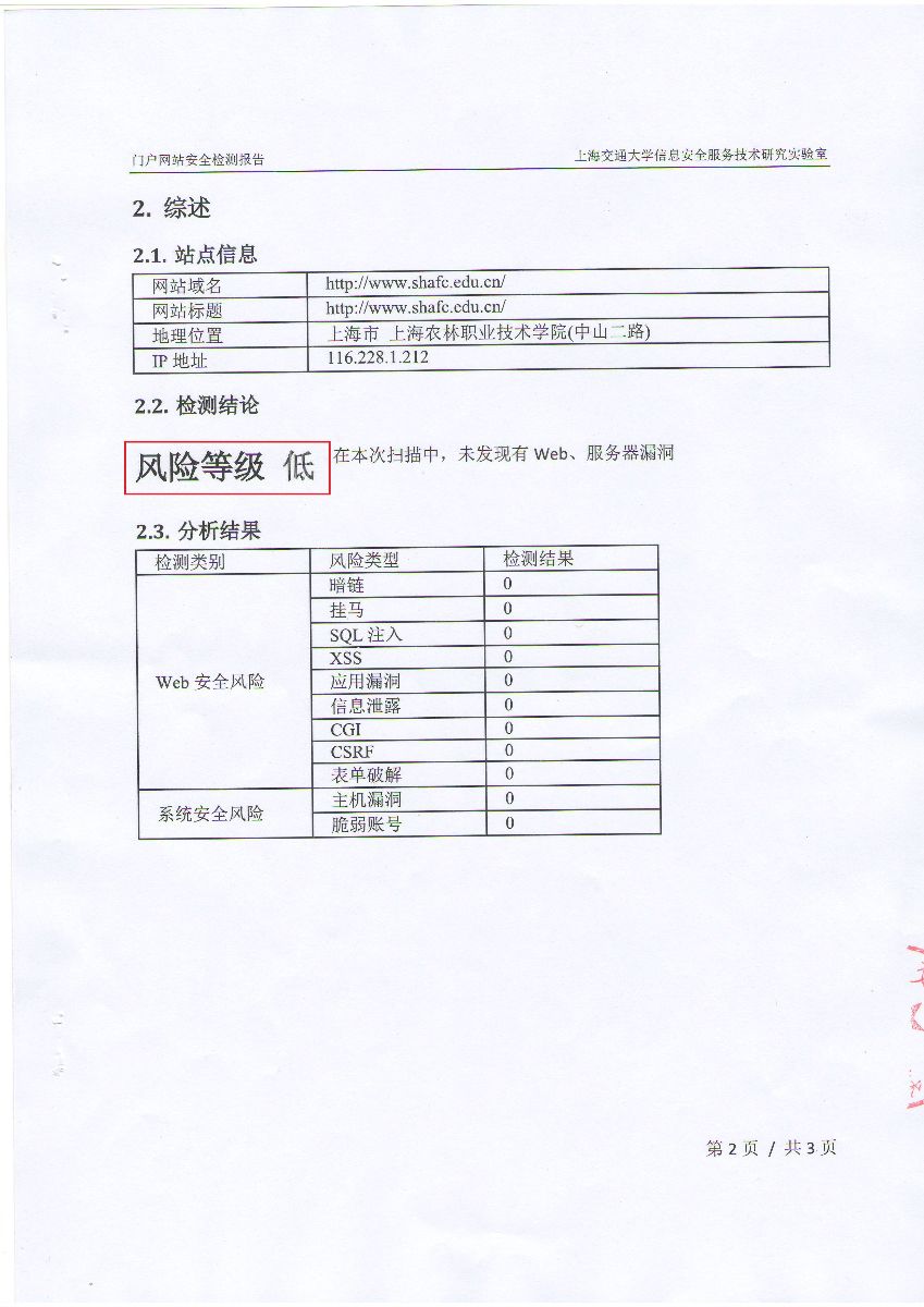 学院、市农校门户网站通过市教委网络与信息安全检测