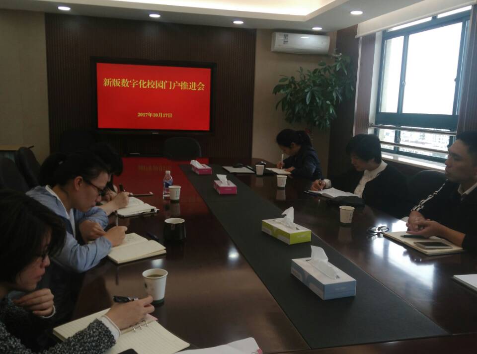 10月17日下午,学院新版数字化校园门户推进暨研讨会在综合楼第二会议室举行,会议由副院长张佳敏主持,院办、宣传处、学生处及信息中心相关负责人参加。