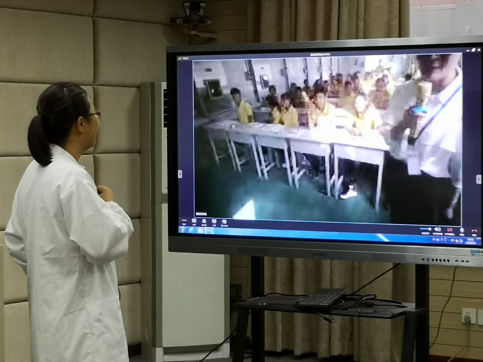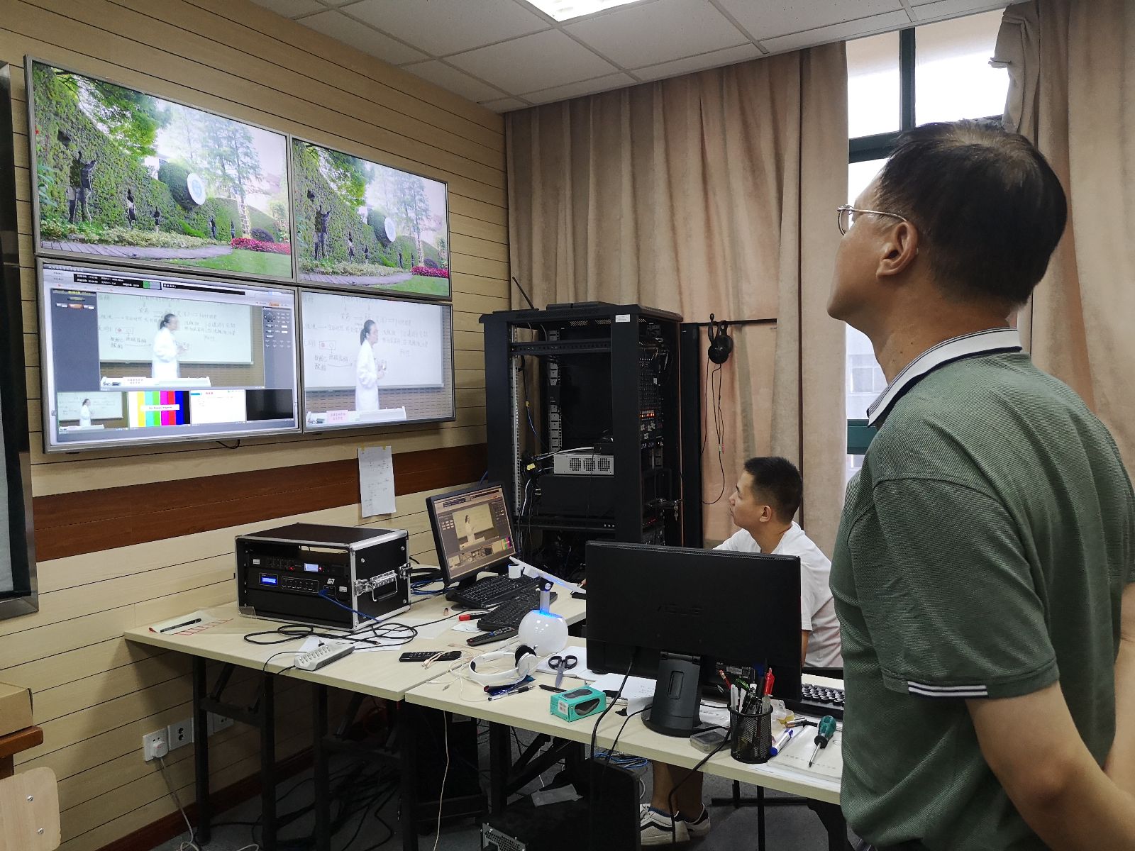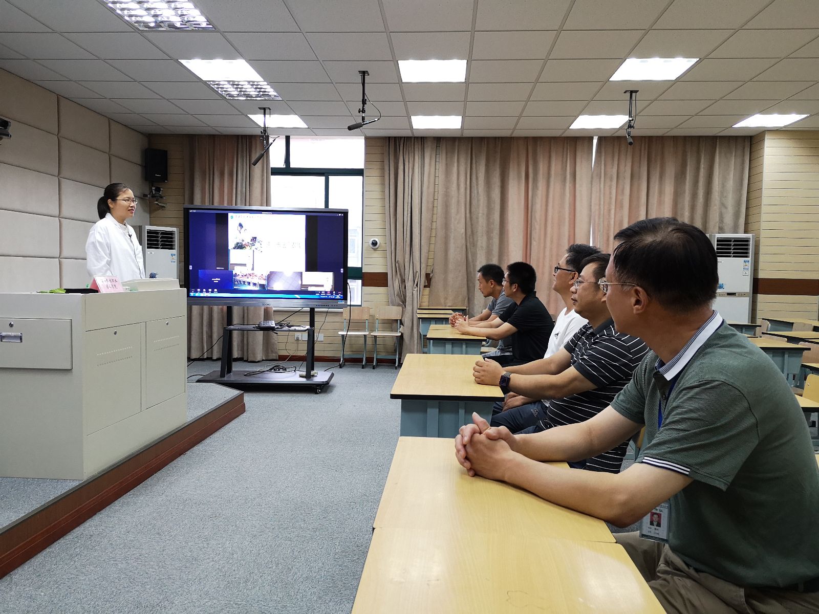 魏华院长,信息中心、图书馆和农生系相关负责人到场听课,信息中心技术人员全程进行了技术保障。为了保障本次授课通畅无误,效果好,分别在8月18日、19日、24日以及今天上午,学院与新疆莎车职业技术学校进行了多次演练和相互交流。
