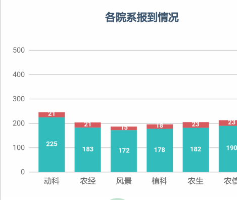 9月8日迎新当天,信息中心全体人员驻扎迎新现场,保障报到、注册、财务、一卡通等系统的正常运行。同时,通过“i尚农”APP“移动迎新”应用来实时查看报到率,报到情况主要通过饼状图和柱状图对各系部和各环节报到情况进行实时的更新统计,一目了然,便于实时查看和了解报到情况。