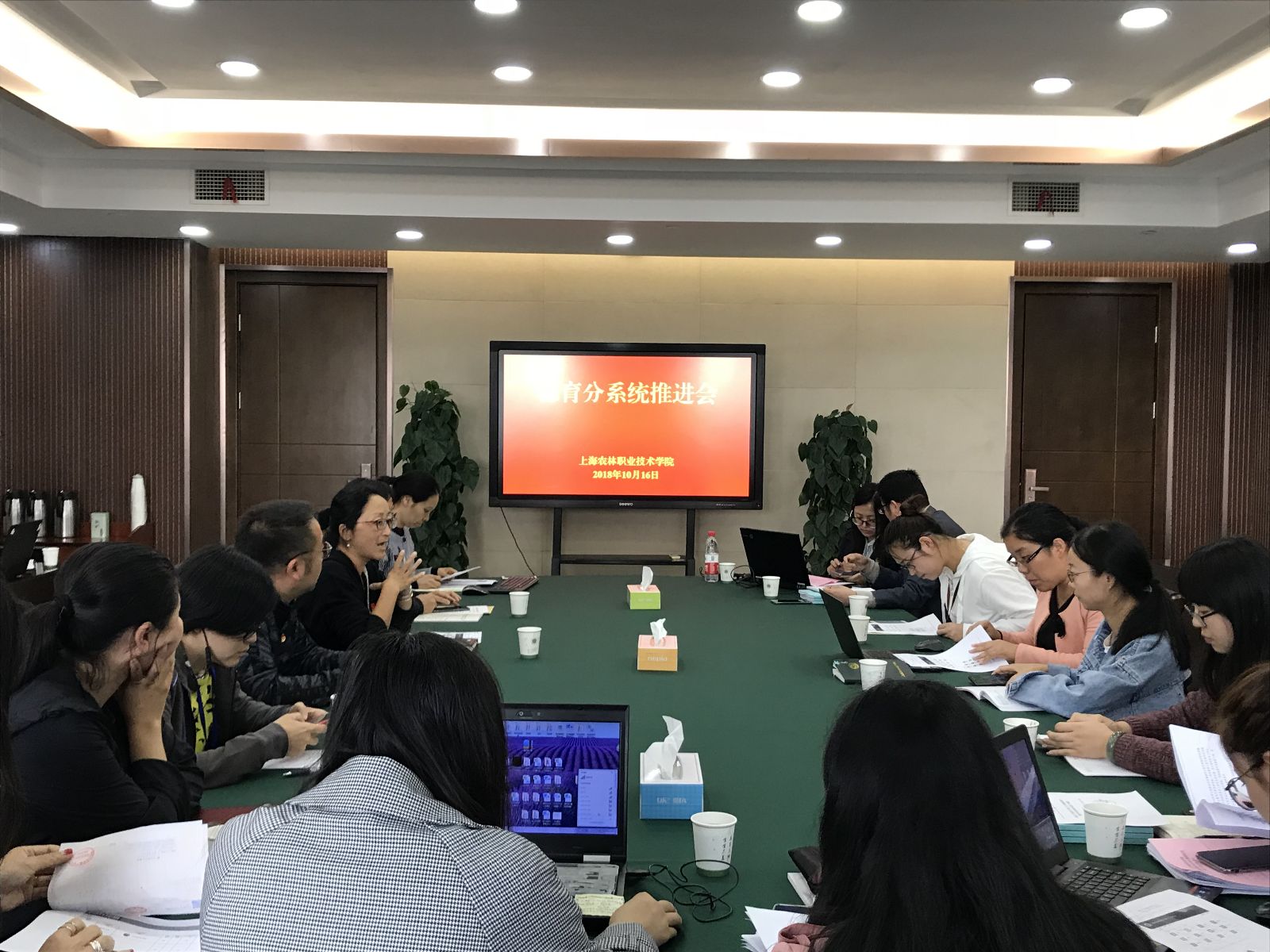10月16日下午,在第四会议室,学生处、信息中心两部门联合召开了德育分系统推进会,学生处、信息中心负责人,团委书记、六个系学生工作负责人,2018级辅导员和相关人员共20人参加了德育分系统推进会。